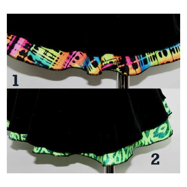 Fun double Skating skirt with panties, black velvet top skirt + colourful underkirt. Limited edition