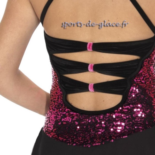 Jerry's black dress : Allover sequins grace this evening style dress with a glamorous high neck and plunging low back set off by a series of three petite bows and a set of crossed back spaghetti straps. Available in ad M, black and pink