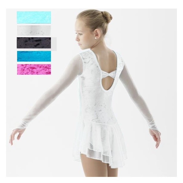 Velvet skating dress, perfect for ice skating or roller skating. In stock to Y4 to XXL. Color Aqua/ white or Black.