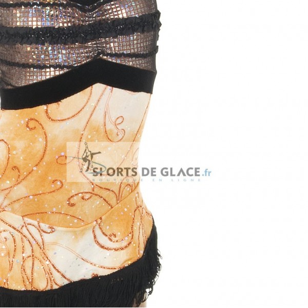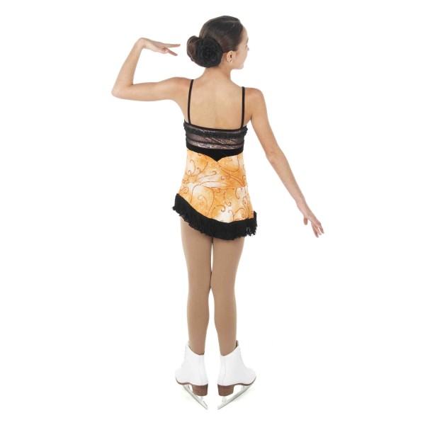 Elite Xpression black and orange figure skating dress, Collection 2014-15 " Character" by Josiane Lamond. Available in sizes Y8-10 and adult S.