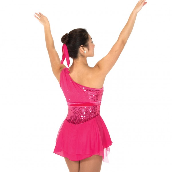 Jolie robe avec buste en sequins recouvert d'un drapé en maille. jupe double crepe georgette et maille mesh voile. Bretelle transparente ajustable.