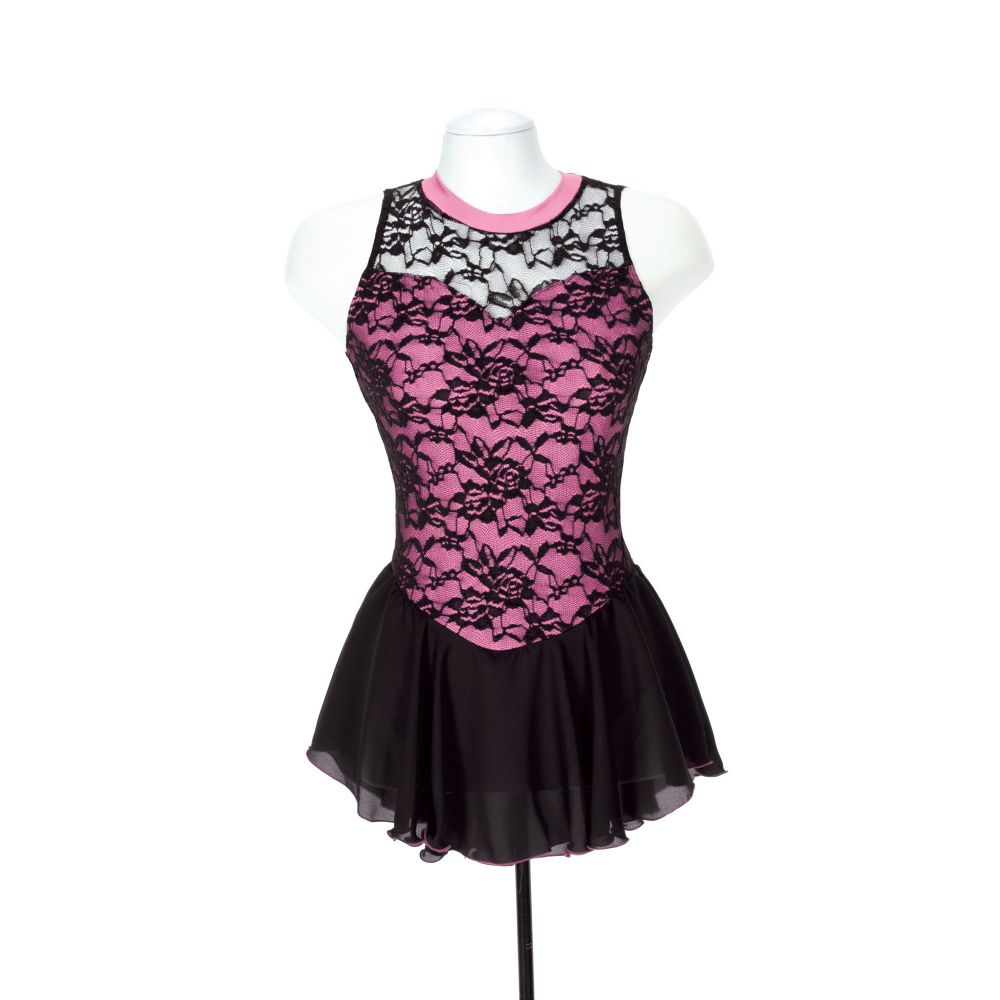 Tenue de patinage lycra et lycra effet dentelle. Sans manches, bicolore NOIR et ROSE , NOIR et BLEU