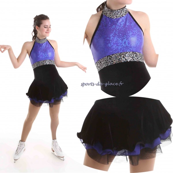 Tunique de compétition noire et violette à sequins argents, Collection '' Groove'' , création J. Lamond. Disponible immédiatement en taille 8ans, 12ans