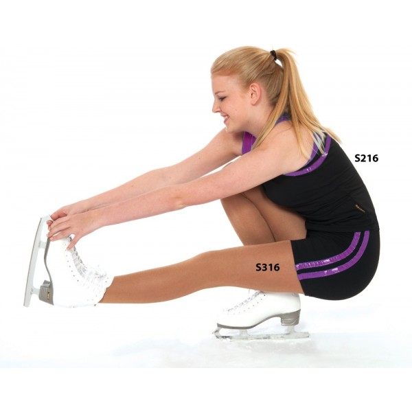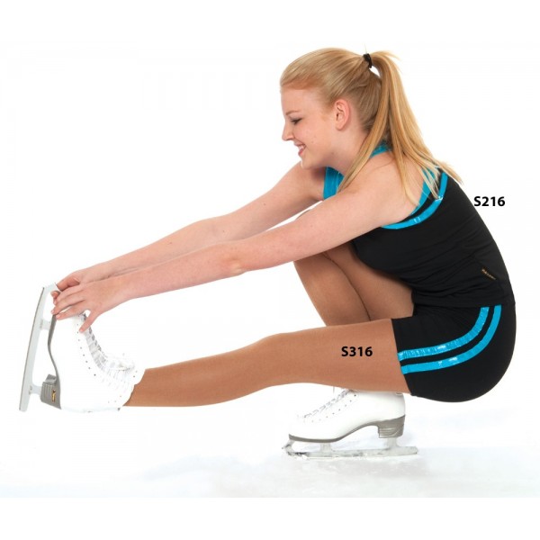 Débardeur pour le patinage ou pour tout autre sport . En tissu extensible , ouatiné à l intérieur pour plus de douceur et de confort . Existe en noir et motif métallisé turquoise, métallisé argent ou métallisé violet . Peut etre porté avec le short assorti référence S316 , le pantalon S116 et la veste à capuche S217.
