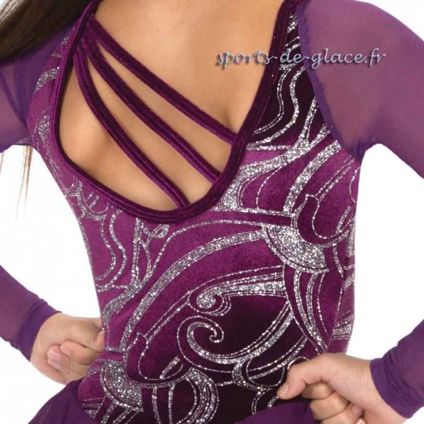 Robe de patinage sur glace ou sur roulettes, velours, crepe et voile mesh. Violette. En stock en 12-14ans.