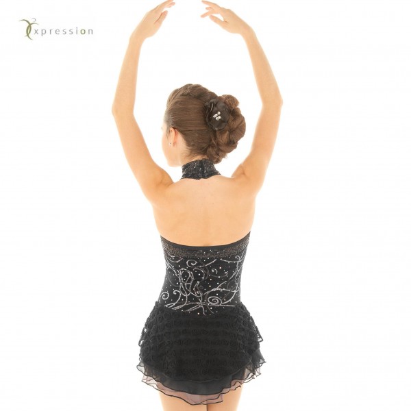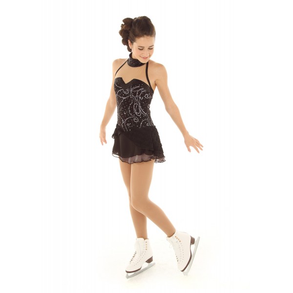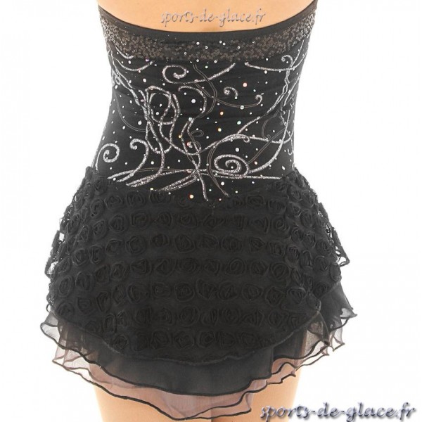 Tenue de patinage artistique noire et argent, Création originale Elite, Collection "The Classics". Disponible en 12 ans uniquement. Dernières pièces. Ne prenez pas trop juste.