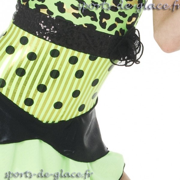 Robe de patinage compétition verte et noire, originale, designer Josiane Lamond collection Crasy Touch. En stock en taille 6ans et 10ans.