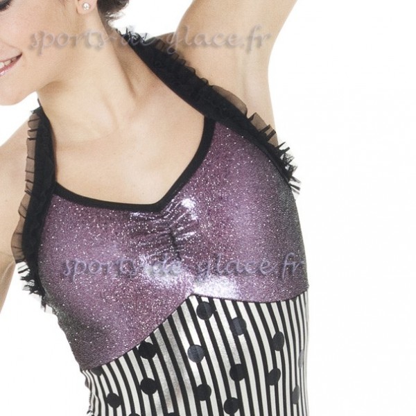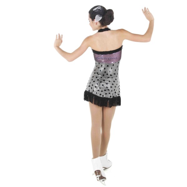 Tunique de patinage sur glace ou sur roulettes, noire et argent. Collection Elite Xpression "Crazy Touch Oh la la" par Josiane Lamond. En stock en taille 12-14 ans et S.