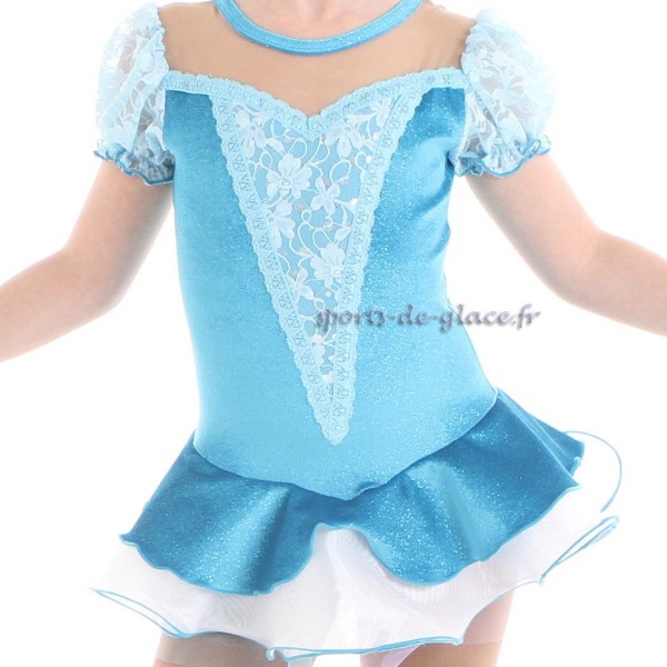 Tunique de compétition roller artistique / patinage sur glace, velours bleue et blanche, Collection "Princesses", création J. Lamond. 4 ans uniquement