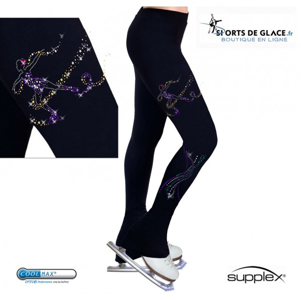 Pantalon de patinage avec motifs scintillants en mini-hologrammes argent, violet et or. du 4-6 au L.